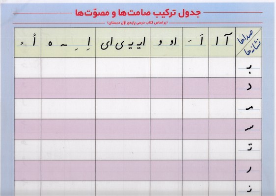 لمینت جدول ترکیب صامت ها و مصوت ها