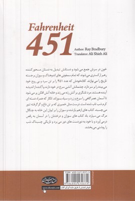 کتاب فارنهایت 451 : این اثر به آن دارد. این اثر که ترسیم‌کننده آینده‌ای تلخ برای کشور آمریکاست، پیش و بیش از هر چیز دنیای آینده این کشور را مبتنی بر دروغ و فریب می‌بیند. ارزش‌ها انگار زیر خروارها آهن و فولاد مدفوع شده‌اند و حتی کسی دیگر آنها را به یاد ندارد. دنیای سرد و فولادی بوجود آمده که در آن قرص خواب پرمصرف‌ترین کالای مردم است. در این بین کسانی که سابق بر این آتش را فرو می‌نشاندند، حالا خود آتش می‌افکندند و...