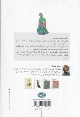 کتاب خاما : خاما نباید نوشته می‌شد. یک ‌بار یکی خیلی سال قبل او را زندگی کرد و در شبی، این راز مگو را گفت و دیگر به سخن درنیامد. لال شد. و گذشت و گذشت و گذشت تا رسید به یکی که کارش گفتن است. این کلمه‌ها امید دارند خاما زنده شود و آن راوی هم. به رقص و به رنگ‌رنگ زرد و قرمز این حلقه آتش، باید که جاری شد و...